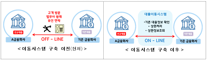 금융위원회에서 대박 서비스를 준비 중에 있습니다. 이름하여 대환(代換) 대출 (기존 대출을 대신해서 갚아주고 새로운 대출을 발생하는 대출) 플랫폼. 예를 들어 기존 A 은행에서 연이율 5%로 대출을 했는데 이번 B은행에서 연 3.5% 의 저금리 상품이 나왔다면 간단히 온라인에서 기존 대출을 상환 후 신규대출가입이 가능하다는 겁니다.